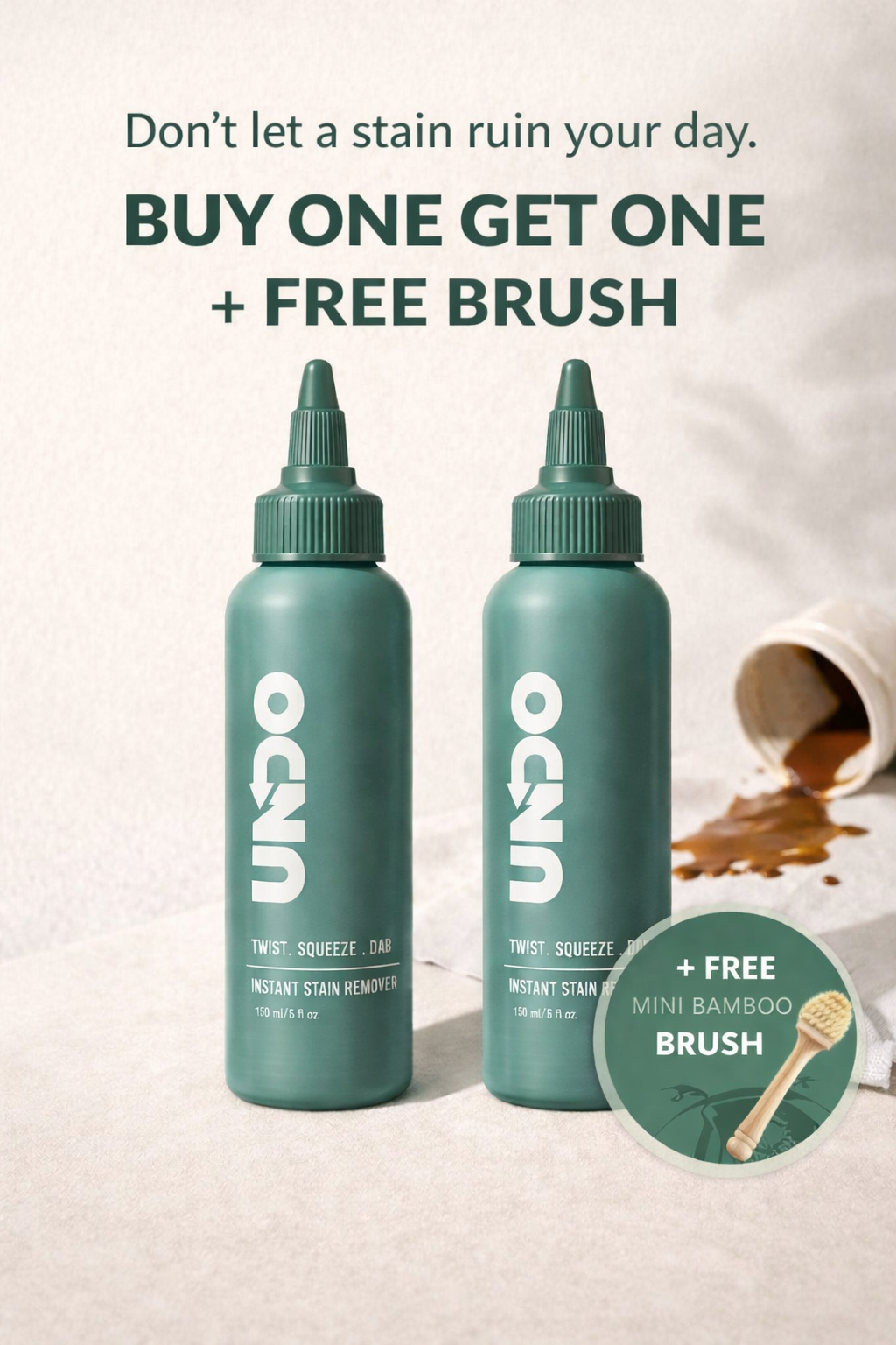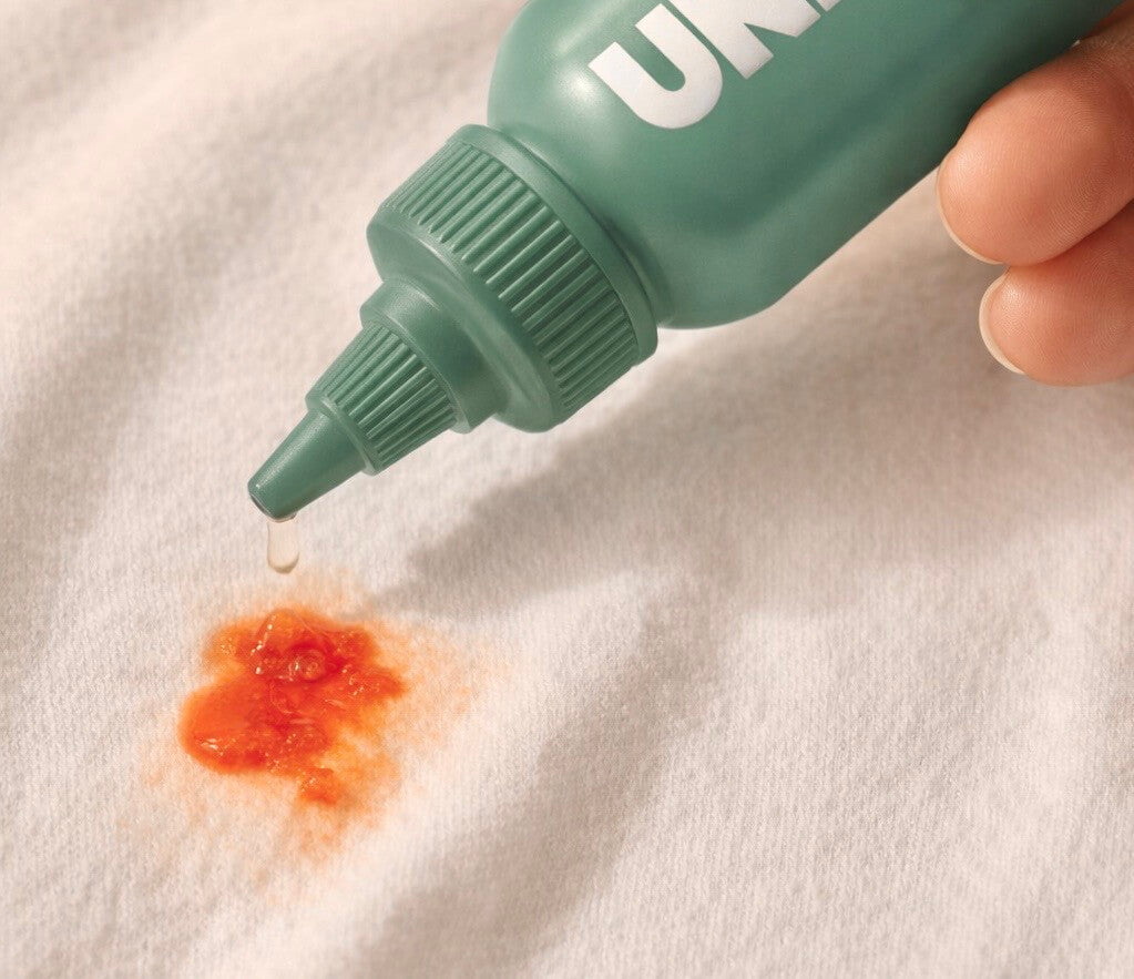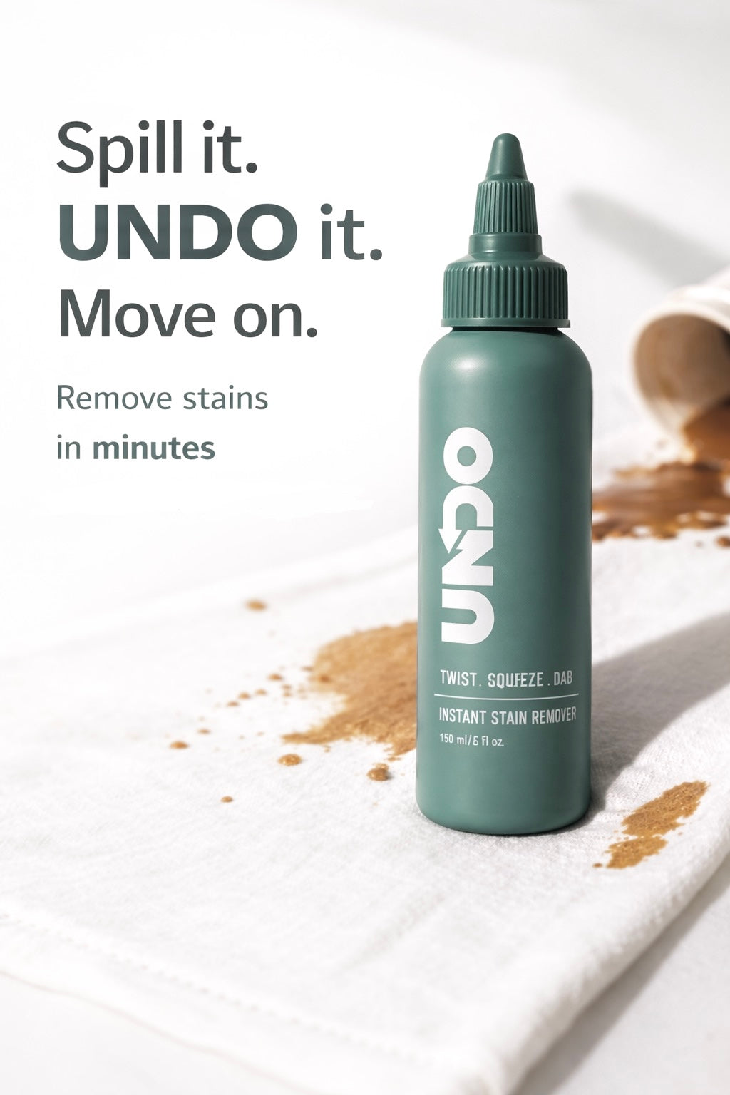 UNDO works on everyday stains like coffee, tea, wine, oil, grease, fruit juice, mud, and food sauces.